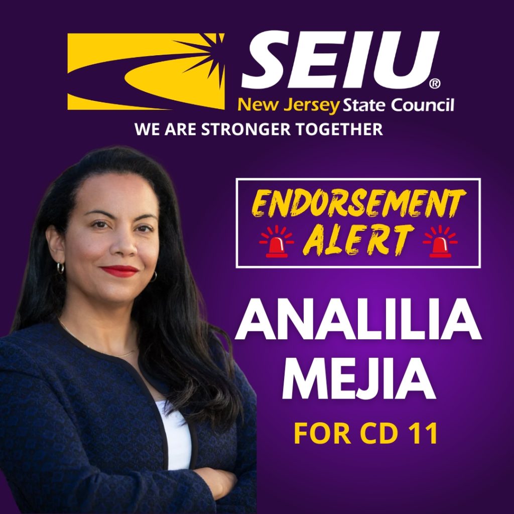 Newark — El Consejo Estatal del SEIU Nueva Jersey respalda a Analilia Mejía para el Cámara de Representantes en la elección especial para el Distrito 11. El Consejo Estatal de SEIU NJ, que representa a más de 20.000 trabajadores esenciales en la sanidad, centros de distribución de almacenes, lavanderías industriales, servicios públicos y sectores relacionados, considera que la Sra. Mejía es la líder que se necesita en Washington para impulsar leyes que mejoren las condiciones de vida de las familias trabajadoras y fortalezcan a las comunidades.